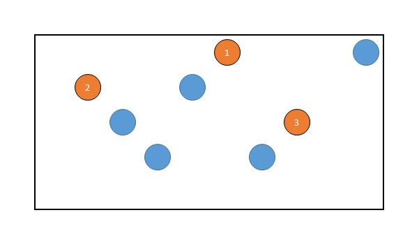 De eerste stip wordt met oranje aangegeven. Je moet onthouden waar deze staat en dat je deze als eerste ziet.