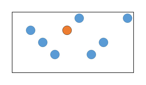 Je krijgt een afbeelding met verschillende stippen te zien. Deze blijft dan gedurende de vraag (test) hetzelfde: